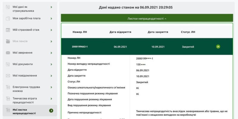 Крім того, електронний лікарняний має унікальний номер, за яким можна дізнатися дати відкриття / закриття та загалом перевірити справжність документа. Вони видно в офісі власника документа.