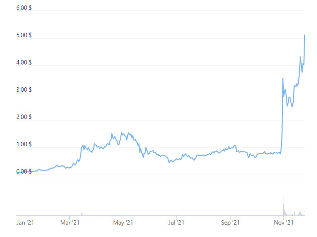 Курс MANA дуже нестабільний. За даними Coinbase, він зріс приблизно на 400% після зміни назви компанії Facebook.